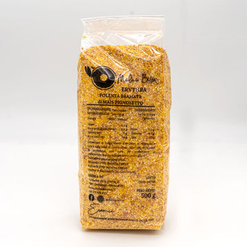 Grâce à une mouture sur meule de pierre, nous obtenons une farine de polenta bramata, à gros grain, au goût marqué et avec une légère note amère en fin de bouche.